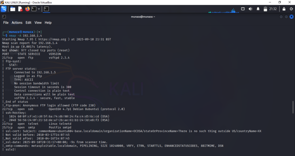 Recon/ScanService scanNmapFound vsftpd 2.3.4 on port 21